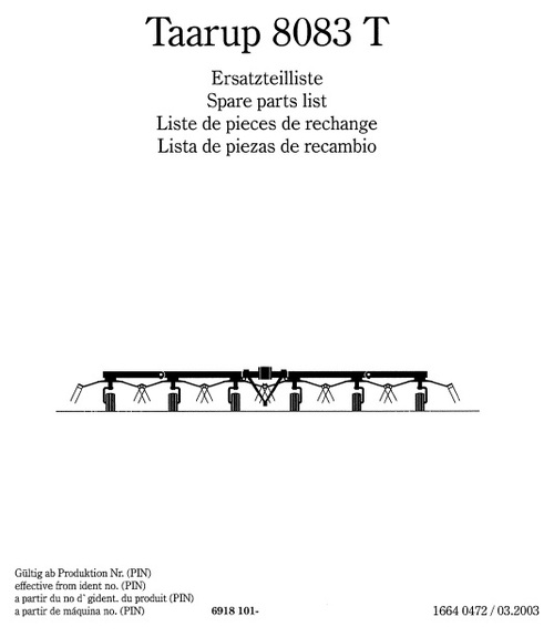 Taarup 8083 Spare Parts List for Rakes and tedders