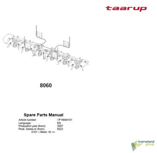 Factory Taarup 8060 Spare Parts manual will give you next useful information: