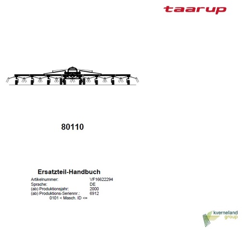Factory Taarup 80110 Spare Parts manual will give you next useful information: