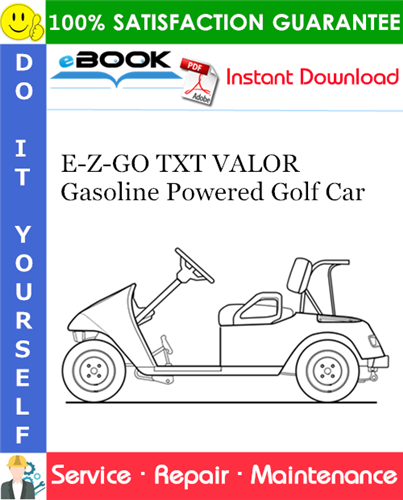 The Service Manual contains detailed information, has specs, diagrams, and actual real photo illustrations, and schemes, which give you complete step-by-step operations on repair, Diagnosing, servicing, technical maintenance & troubleshooting procedures for your E-Z-GO TXT VALOR Gasoline Powered Golf Car. this manual offers full information you need for repair your E-Z-GO TXT VALOR Gasoline Powered Golf Car. the information in this manual will enable you to find trouble and to understand how to repair and maintain your machine without going into service. YOU CAN DO THE REPAIRS YOURSELF AND SAVE MONEY $$$