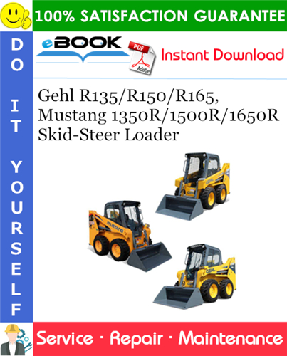 This is the COMPLETE Service Repair Manual for the Gehl R135/R150/R165, Mustang 1350R/1500R/1650R Skid-Steer Loader. It contains deep information about maintaining, assembly, disassembly and servicing your Gehl Skid-Steer Loader.