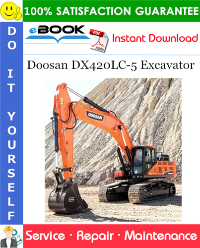 This is the COMPLETE Service Repair Manual for the Doosan DX420LC-5 Excavator. It contains deep information about maintaining, assembly, disassembly and servicing your Doosan DX420LC-5 Excavator.