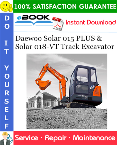 This is the COMPLETE Service Repair Manual for the Daewoo Solar 015 PLUS & Solar 018-VT Track Excavator. It contains deep information about maintaining, assembly, disassembly and servicing your Daewoo Solar 015 PLUS & Solar 018-VT Track Excavator.
