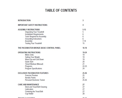 PaceMaster Bronze Basic Treadmill Owner Manual