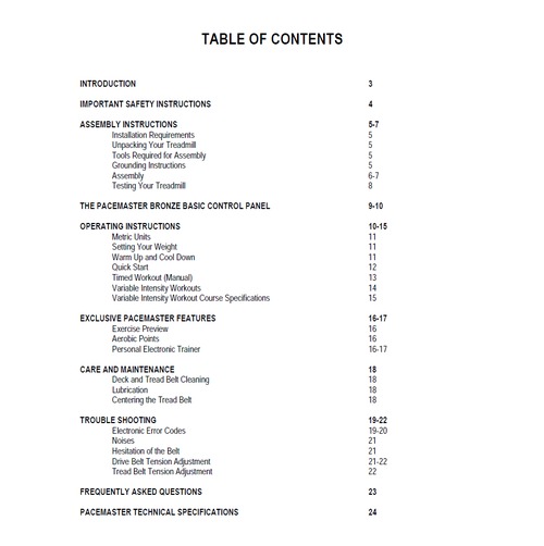 PaceMaster Bronze Basic Treadmill Owner Manual