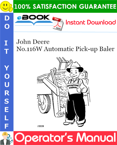 This is the COMPLETE Operators Manual for the John Deere No.116W Automatic Pick-up Baler.