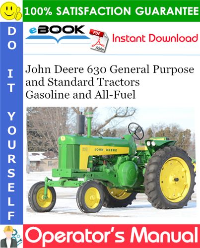 This is the COMPLETE Operators Manual for the John Deere 630 General Purpose and Standard Tractors Gasoline and All-Fuel.