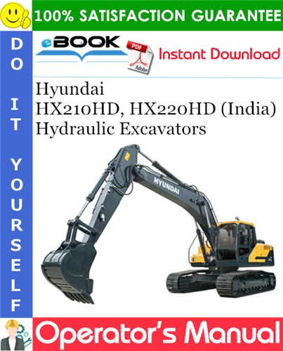 This is the COMPLETE Operators Manual for the Hyundai HX210HD, HX220HD (India) Hydraulic Excavators.