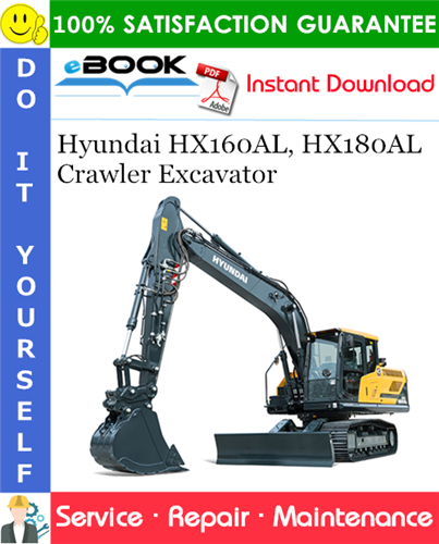 This is the COMPLETE Service Repair Manual for the Hyundai HX160AL, HX180AL Crawler Excavator. It contains deep information about maintaining, assembly, disassembly and servicing your Hyundai HX160AL, HX180AL Crawler Excavator.