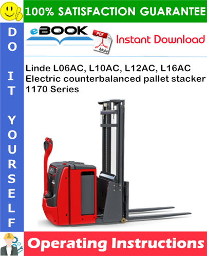 This is the COMPLETE Operating Instructions Manual for the Linde Electric counterbalanced pallet stacker Type 1170; Models L06AC, L10AC, L12AC, L16AC.