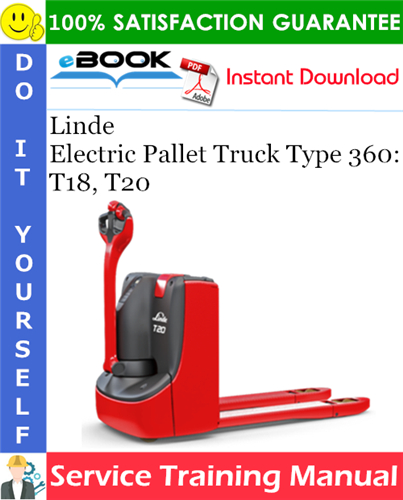 This is the COMPLETE Service Training Manual for the Linde Electric Pallet Truck Type 360: T18, T20. This manual provides detailed service information, step-by-step repair instruction and maintenance specifications. it has been prepared as an aid to improve the quality of repairs by giving the operator an accurate understanding of the product and by showing him the correct way to perform repairs and make judgements. YOU CAN DO THE REPAIRS YOURSELF AND SAVE MONEY $$$