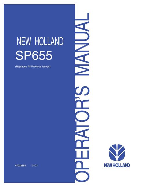 NEW HOLLAND SP655 SPRAYER OPERATORS MANUAL