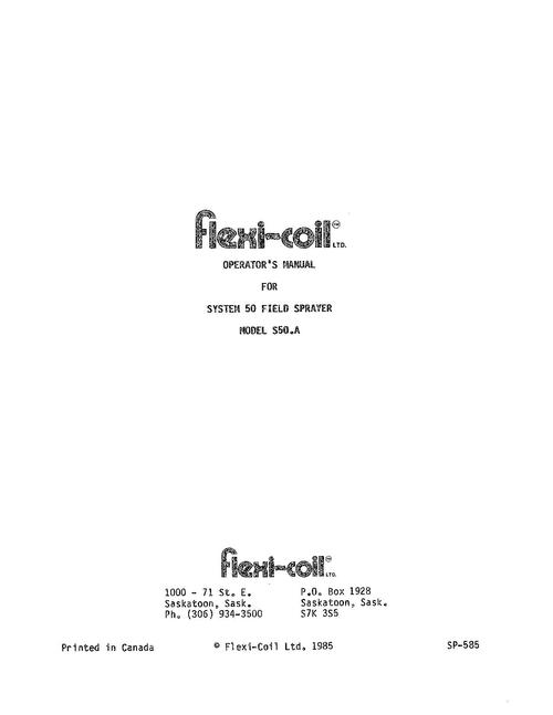 NEW HOLLAND SYSTEM 50 FIELD SPRAYER S50.A OPERATORS MANUAL