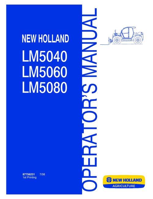 NEW HOLLAND LM5040 LM5060 LM5080 TELESCOPIC TELEHANDLER MAINTENANCE INSTRUCTION OPERATORS MANUAL