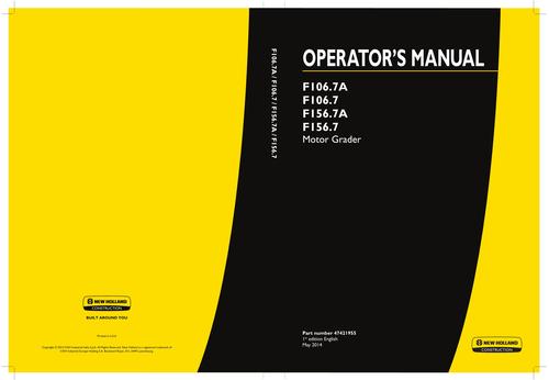NEW HOLLAND F106.7A F106.7 F156.7A F156.7 MOTOR GRADER OPERATORS MANUAL