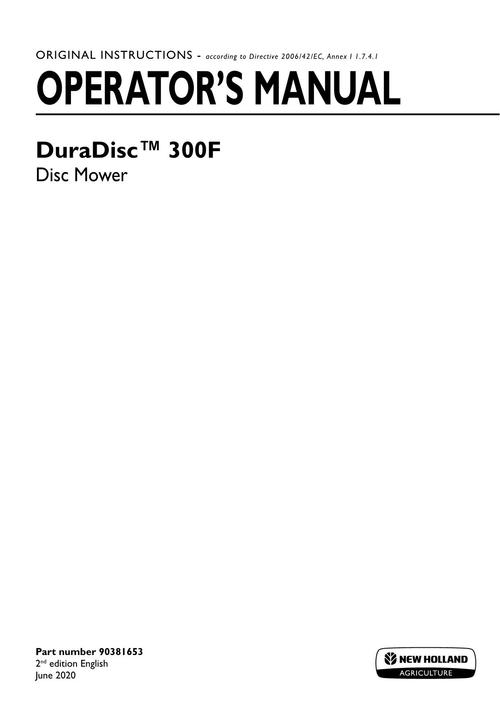 NEW HOLLAND DURADISC TM 300F DISC MOWER OPERATORS MANUAL #2