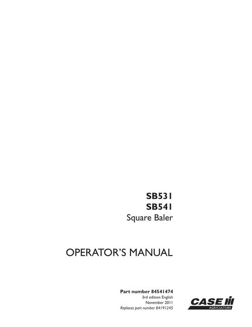 CASE IH SB531 SB541 SGUARE BALER OPERATORS MANUAL #1