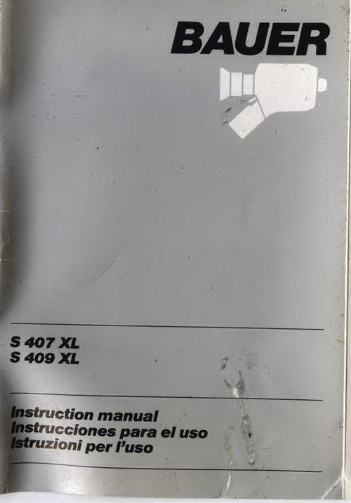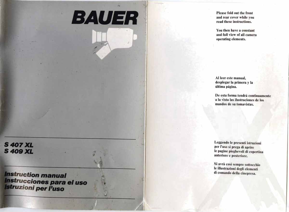 PDF copy of original Bauer S 407 & 409 XL Super 8 Camera instruction manual. Complete. No missing pages. English, Spanish and Italian.
