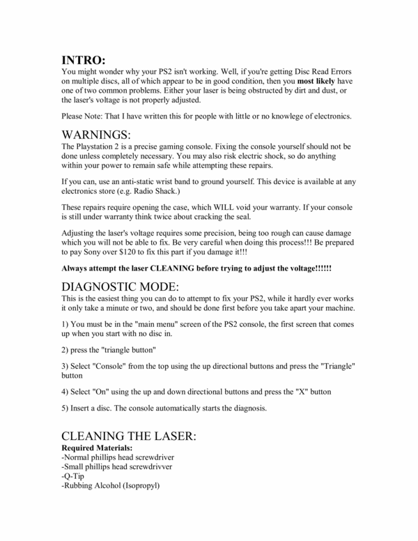 With the Playstation® Repair Guide you\'ll learn to clean the PS2 laser, fix CD/DVD reading errors go into diagnostic mode, fix clicking/squeeking sounds, adjust voltage and much more.