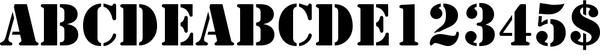 Stencil™ was designed by Gerry Powell for American Type Founders in 1938. It's a faithful imitation of a stenciled alphabet, much like those used on boxes and crates, with rounded edges and thick main strokes. The font is composed of capital letters and figures; there is no lowercase. Use Stencil™ for graphic designs that call for a rough-and-ready look, a military look, or even to create real stencils for signs and marking boxes or luggage. Alexei Chekulaev made a Cyrillic version of Stencil™ in 1997.