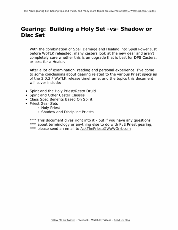 With the changeover of Spell Damage and Healing into one combined stat of Spell Power, many Healers are confused as to what is "their" gear and what is best left for the DPS casters. This document is designed to help all specializations of Priest decide what gear is best for them when gearing up for Naxx.