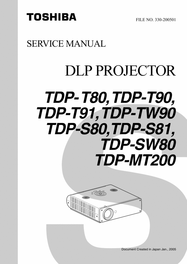 Service and repair manual for Toshiba TDP-T80 TDP-T90 TDP-T91 DLP projectors.