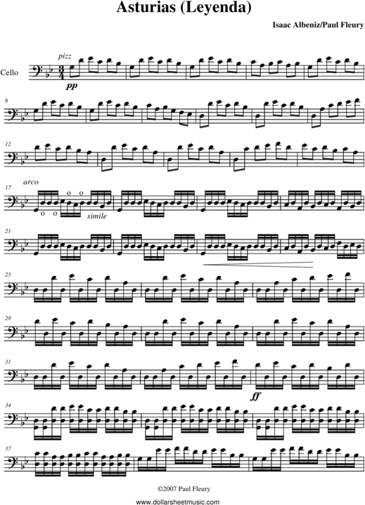 Cello part arranged by Paul Fleury, comes with Piano part, famous piece and a nice recital add-on. 9pps.