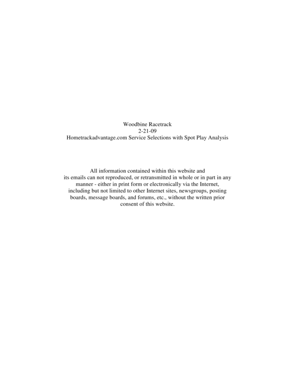 Hometrackadvantage.com Service Spot Plays with Analysis featuring Sandy Brown for Woodbine Racetrack 2-21-09