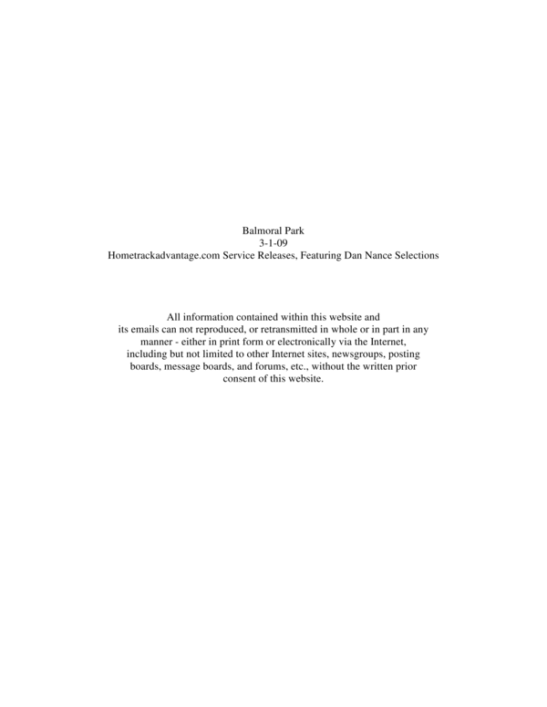 Hometrackadvantage.com Service Selections Featuring Dan Nance Balmoral Park 3-1-09