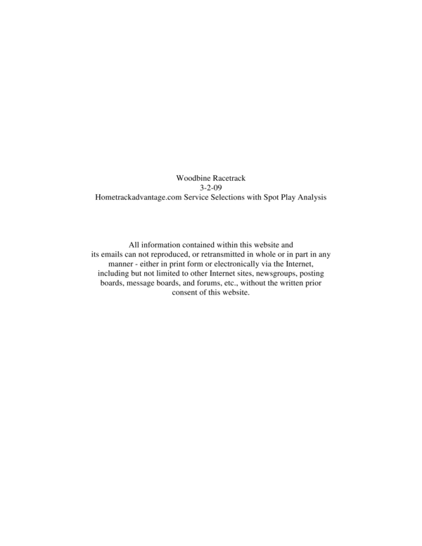 Hometrackadvantage.com Service Spot Plays with Analysis Featuring Sandy Brown Woodbine Racetrack 3-2-09