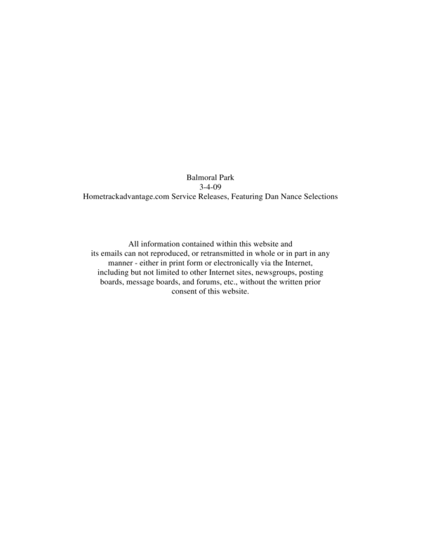 Hometrackadvantage.com Service Selections Featuring Dan Nance Balmoral Park 3-4-09