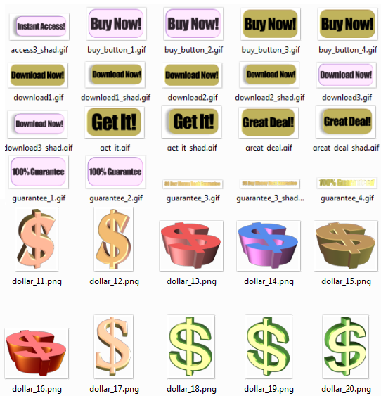 Animated 3D graphics with the expressions "Download Now", "Get It Now", "Buy Now", etc,.