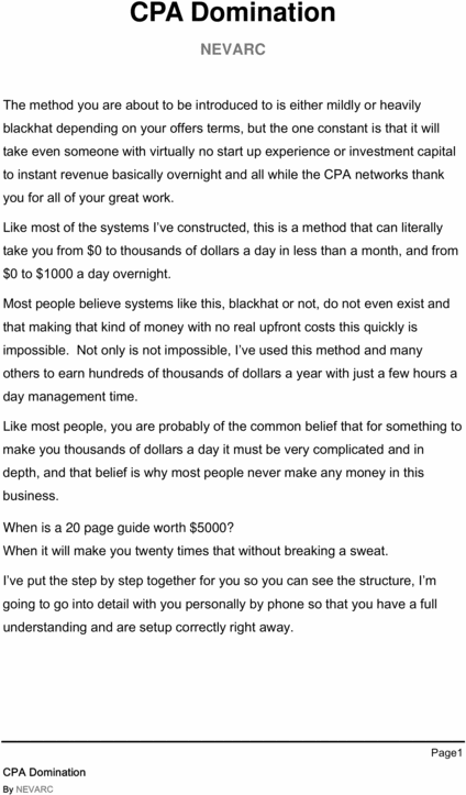 The method you are about to be introduced to is either mildly or heavily blackhat depending on your offers terms, but the one constant is that it will take even someone with virtually no start up experience or investment capital to instant revenue basically overnight and all while the CPA networks thank you for all of your great work.