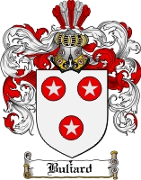 INSTANTLY DOWNLOAD the Buliard Family Crest / Buliard Coat of Arms High Quality 300 dpi JPG file. Download it and use it freely to print for your own personal use. Use for Letterheads, Prints, T-Shirts, Web Pages, etc. File is of much higher quality than the sample shown. Downloads in Seconds. VIEW OUR OTHER GIFT ITEMS AT: https://www.tradebit.com