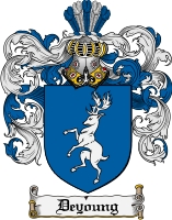 INSTANTLY DOWNLOAD the Deyoung Family Crest / Deyoung Coat of Arms High Quality 300 dpi JPG file. Download it and use it freely to print for your own personal use. Use for Letterheads, Prints, T-Shirts, Web Pages, etc. File is of much higher quality than the sample shown. Downloads in Seconds. VIEW OUR OTHER GIFT ITEMS AT: https://www.tradebit.com