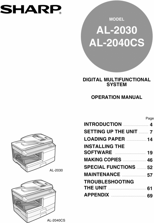 Sharp AL-2040CS/2030 Users Manual, Owners Manual