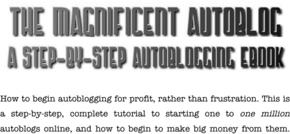 How to begin autoblogging for profit, rather than frustration. This is a step-by-step, complete tutorial to starting one to one million autoblogs online, and how to begin to make big money from them. NOW.