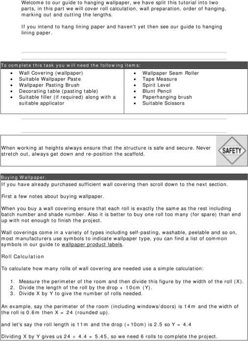 Welcome to our guide to hanging wallpaper, we have split this tutorial into two parts, in this part we will cover roll calculation, wall preparation, order of hanging, marking out and cutting the lengths. If you intend to hang lining paper and haven\'t yet then see our guide to hanging lining paper.