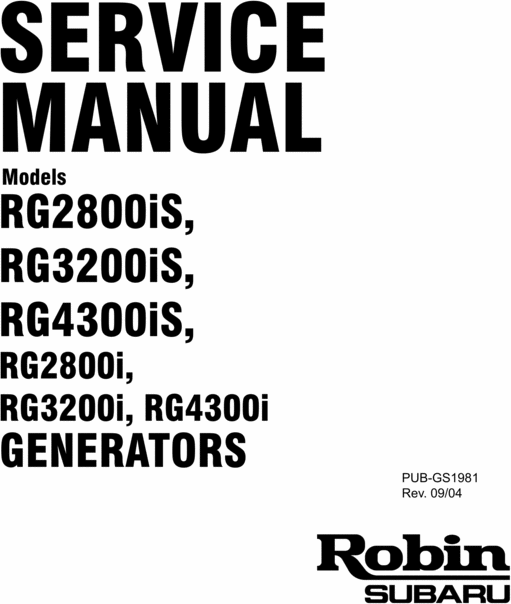 Subaru Robin Generator Technician / Service Manual