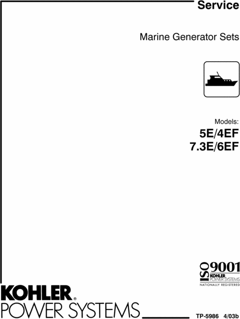 Kohler Power generators models 5E 4EF 7.3E 6EF