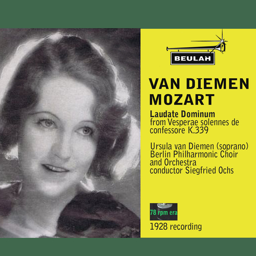 Perhaps the most famous recording of the setting by Mozart, is this 1928 performance by Ursula van Diemen with the Berlin Philharmonic Orchestra and Chorus conducted by Siegfried Ochs. It is the penultimate movement of a larger piece known as the Vesperae solennes de confessore (K.339).