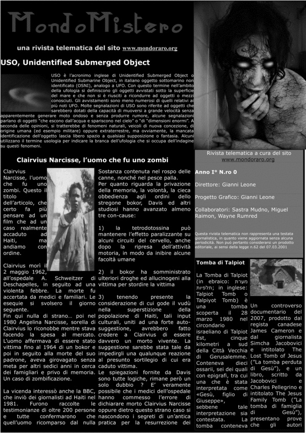 Paranormale, ufo, nazizmo, zombie e molto altro per una rivista assolutamente da non perdere.