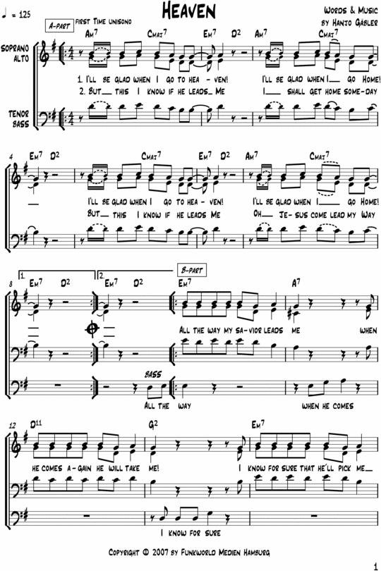 10 brandnew Gospelsongs of 2009 of the compilation Songs for Gospel 2. Scores for SATB with chords! 28 Sites Scores pure. Its amazing!