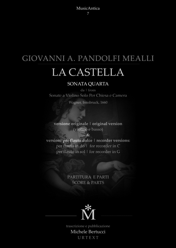 Giovanni Antonio Pandolfi Mealli | Sonata IV La Castella from op 3 - 1660 - transcr. for recorder (c & g version) with original for violin - score and parts | ORIG + 2 FLUTE VERSIONS!!