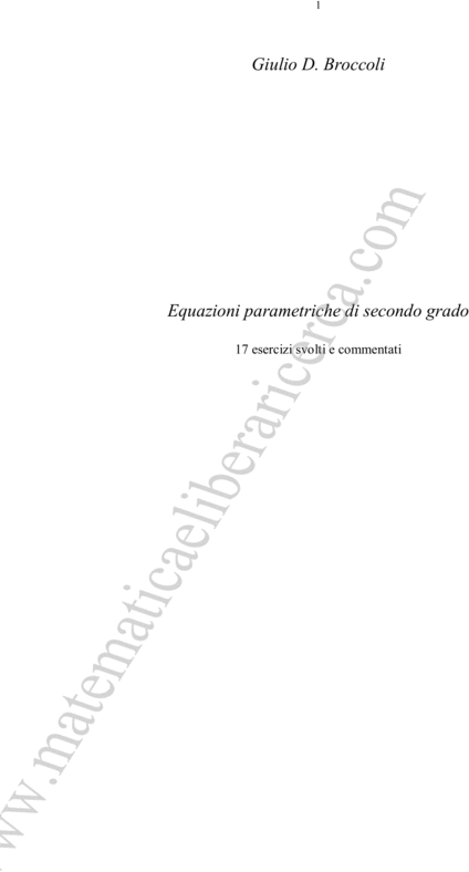 Equazioni parametriche di secondo grado con 17 esercizi svolti e commentati.