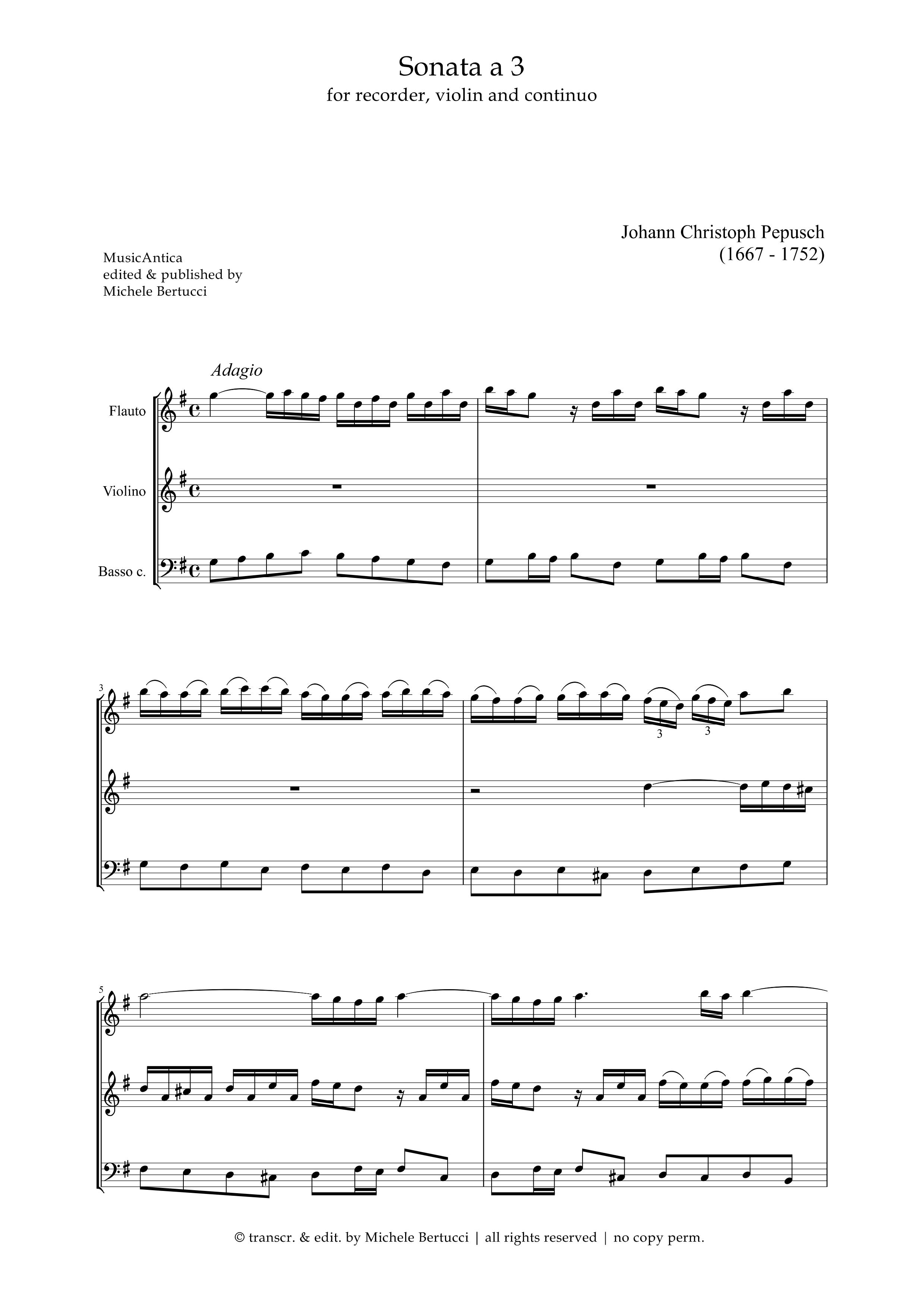 Johann Christoph Pepusch(1667 1752)|Trio for recorder, violin & continuo - SCORE & PARTS