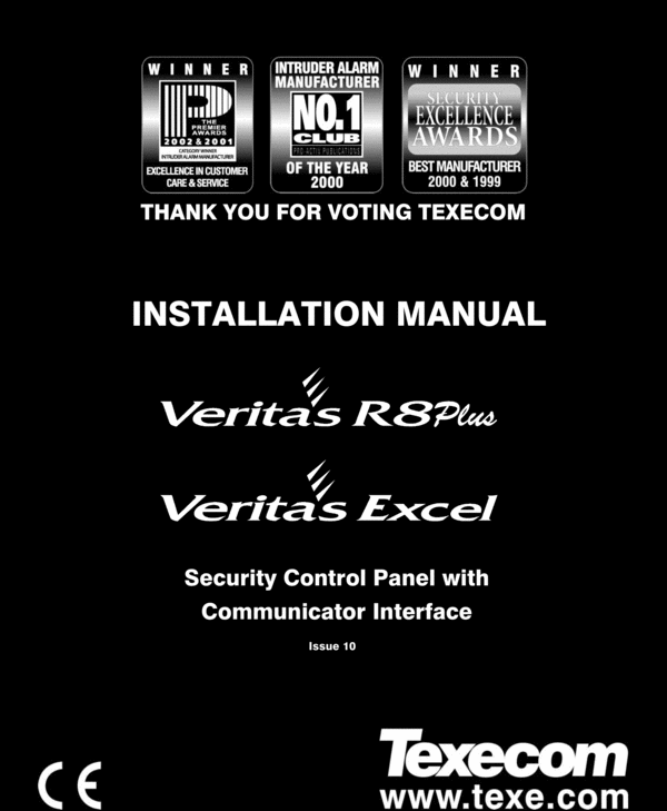 Installation and programming manual for the Texecom R8 Plus alarm control panel.