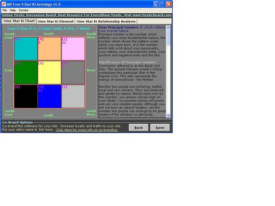 MB Free 9 Star Ki Astrology software is an advanced yet simple program that makes the user familiar to one of the most ancient branches of Japanese astrology - the Nine Star Ki Astrology. The program offers an easy to use interface, which enables you to know about your nine star ki numbers and your relationships in general. It is thus a remarkable and an accurate analytical program based upon your birth date and covers your personality traits. 9 Star Ki Astrology is generally known as the Japanese astrological method for determining your daily horoscope and personal relationships using the Nine Stars method, which has its basis on the Feng Shui Magic Square, or what is more commonly known as the Lo Shu. The word Energy is referred to as the Ki according to Japanese astrology. 9 Star Ki Astrology displays your Nine Star Ki numbers, your Birth or Natal Chart, the Elements and the predictions for your relationships. MB Free Nine Star Ki Astrology software reading is based on three numbers - Principal Number, Character Number and the Energetic Number.