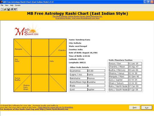 MB Astrology Rashi Chart (East Indian Style) Software is an effective tool, which is based on an astrological analysis of your rashi. This is a completely free software and generates the rashi chart in the East Indian style or Bengali style which can be analyzed by experts.