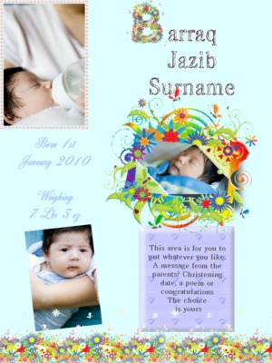 This voucher entitles the buyer to one Baby Announcement designed, published and hosted by https://www.tradebit.com for one month. Further hosting costs just .95pence per month (or equivalent in your currency). The design is ‘Flowers blue’ as pictured. The buyer can contact https://www.tradebit.com at the following address.